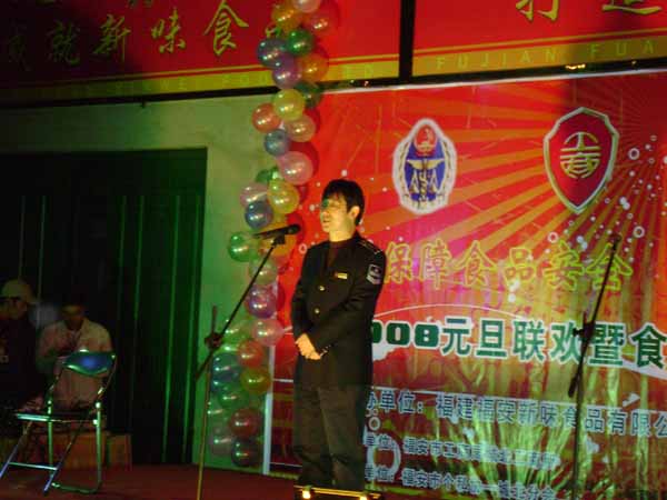會上,城北工商所所長肖煥勤、質(zhì)量技術(shù)監(jiān)督局所長陳如春、新味公司總經(jīng)理黃細(xì)忠分別致辭,為食品安全的宣傳和落實(shí)打下決心,祝到會的嘉賓和新味公司的全體員工新年快樂,并恭祝福安市新味食品的明天越來越美好,在新的一年有新的篇章。