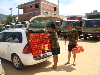 2008年7月18日,新味公司總經(jīng)理黃細(xì)忠與公司數(shù)名員工走訪霞莆某駐軍部隊(duì),并攜帶價(jià)值1萬(wàn)元人民幣的新味公司生產(chǎn)的新味牌純凈水和糕點(diǎn)用于改善該駐軍部隊(duì)官兵的生活。向仍在夏日的烈日下操作的全體部隊(duì)官兵致以親切的慰問和崇高的敬意。瑾代表新味公司對(duì)祖國(guó)部隊(duì)的擁護(hù),對(duì)部隊(duì)官兵的關(guān)心,感謝部隊(duì)對(duì)社會(huì)做出的貢獻(xiàn)。