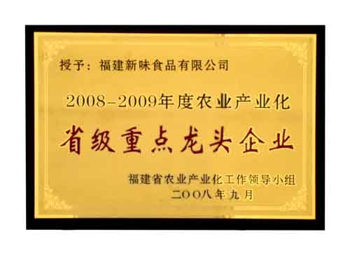 熱烈慶祝我司獲得“2008-2009福建省農(nóng)業(yè)產(chǎn)業(yè)化省級重點龍頭企業(yè)”榮譽