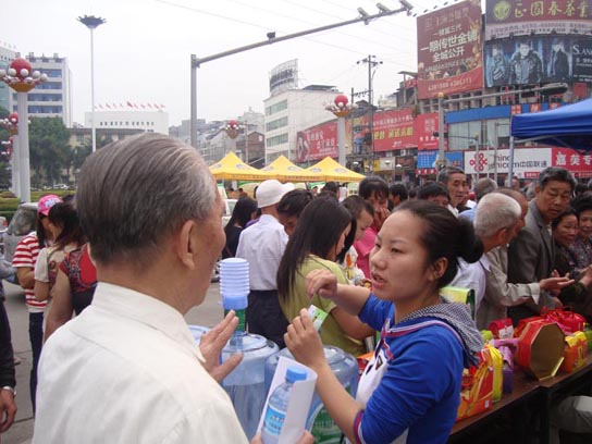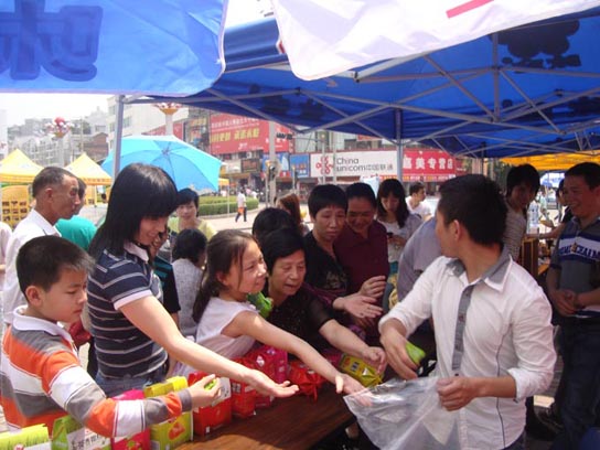 我公司參加<<食品安全法>>實施一周年宣傳活動!活動期間我公司免費發(fā)送飲用水贈飲卷、茶香蜜餞等產(chǎn)品。受到廣大群眾的認可!