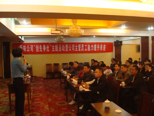 為進(jìn)一步推進(jìn)“創(chuàng)先爭優(yōu)”活動深入開展,11月27日,在市非公經(jīng)濟(jì)創(chuàng)先爭優(yōu)指導(dǎo)組的指導(dǎo)下,福建新味食品有限公司在福安市金源大酒店五樓舉行“創(chuàng)先爭優(yōu)”主題活動暨公司主管員工能力提升講座。此次講座以“組織創(chuàng)先進(jìn),黨員爭優(yōu)秀,企業(yè)有發(fā)展,員工得實惠”為指導(dǎo),旨在通過對主管員工的培訓(xùn),增加其精神食糧,拓展其見識面,為提升員工創(chuàng)造能力打下堅實基礎(chǔ)。講座特邀深圳新高度企業(yè)咨詢有限公司張慧女士主講。講座分為企業(yè)唯一不變的就是改變、企業(yè)創(chuàng)造最佳成果的兩大思維、創(chuàng)造最佳成果的三大能力三個專題,深度詮釋了企業(yè)創(chuàng)新的重要意義及創(chuàng)新思維的培養(yǎng)。現(xiàn)場氣氛活躍,通過理論講解、現(xiàn)場討論等多種形式,極大地調(diào)動了參會人員的積極性,公司員工紛紛表態(tài)要將“創(chuàng)新是企業(yè)的生命力”的理念貫穿于工作始終,講座收效良好。共有39名該公司主管員工參加了此次講座。