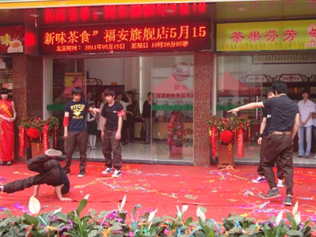 2011年5月15日上午九點(diǎn)我公司“新味茶食”福安旗艦店隆重開(kāi)業(yè)!開(kāi)業(yè)慶典場(chǎng)面觀,嘉賓和員工各個(gè)笑逐顏開(kāi),到處洋溢著節(jié)日的氣氛!