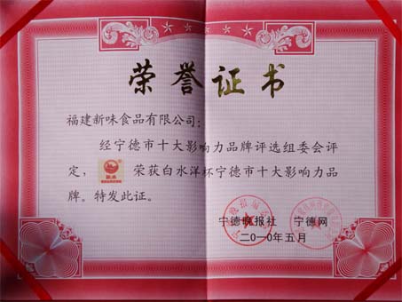 熱烈祝賀“新味”品牌被評(píng)為“寧德十大影響力品牌”榮譽(yù)稱號(hào),“白水洋”杯“寧德十大影響力品牌”經(jīng)過網(wǎng)絡(luò)投票、專家評(píng)比,品牌美譽(yù)度調(diào)查,品牌影響力調(diào)查等層層篩選:“新味”品牌因其產(chǎn)品獨(dú)特,帶動(dòng)面廣,影響力大而名列其中。