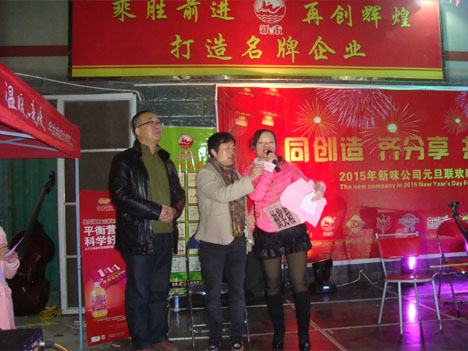 不知不覺又度過了蓬勃發(fā)展的一年,喜悅伴著汗水,成功伴著艱辛,告別激情的2014,迎接嶄新的2015。新年來(lái)臨之際,我司聯(lián)合東升、環(huán)宇、新品香、金太陽(yáng)、許寶洋、易時(shí)代于12月31日晚在本公司舉行以“同創(chuàng)造 齊分享 共飛揚(yáng)”為主題的元旦聯(lián)歡晚會(huì)。