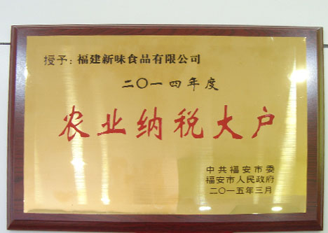 3月5日,福安市表彰2014年度納稅大戶,經(jīng)過一年的努力福建新味食品有限公司再次榮登納稅大戶領(lǐng)獎臺。展望未來,新味公司將繼續(xù)奉行“以農(nóng)為友,以民為本”的理念,用獨(dú)特的企業(yè)文化精心打造市場,憑著優(yōu)質(zhì)的產(chǎn)品及不斷創(chuàng)新的經(jīng)營理念,腳踏實地地將企業(yè)做強(qiáng)做大,繼續(xù)為福建山區(qū)農(nóng)村的經(jīng)濟(jì)發(fā)展和農(nóng)民脫貧致富,為建設(shè)海峽西岸經(jīng)濟(jì)區(qū),構(gòu)建和諧社會作出新的貢獻(xiàn)。