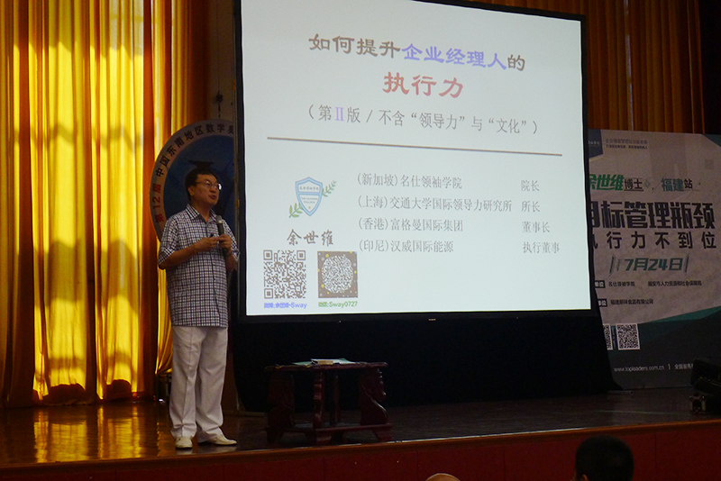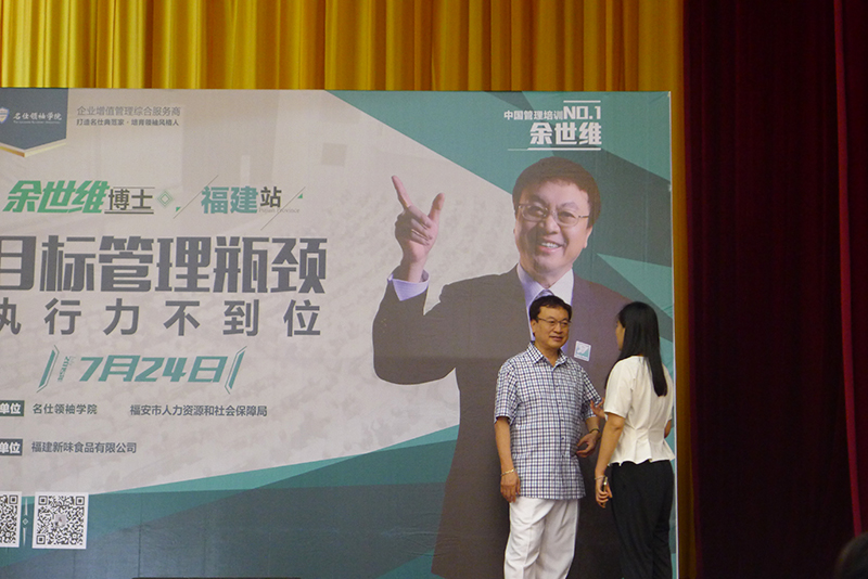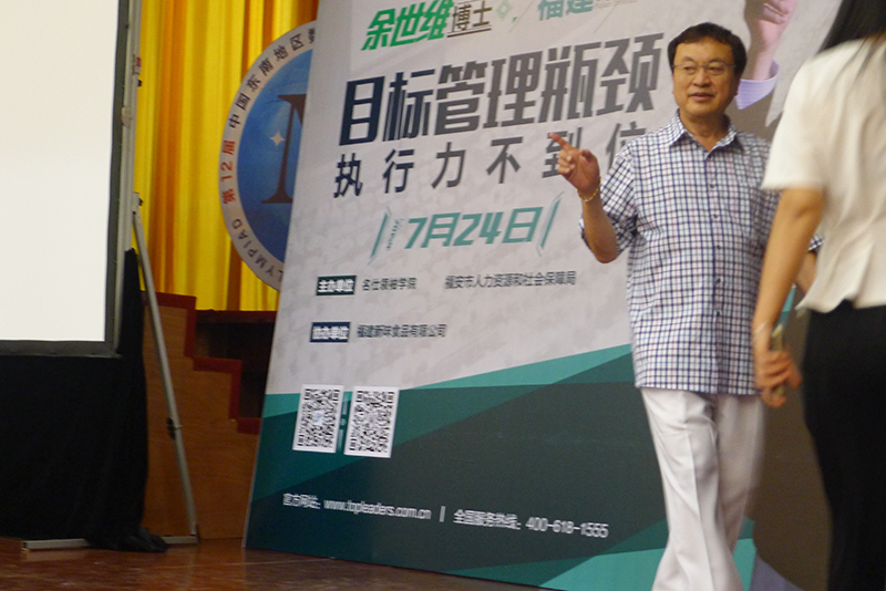 2015年7月24日,福安一中禮堂,余世維博士的“目標(biāo)管理瓶頸 執(zhí)行力不到位”大型講座精彩開(kāi)講,本次講座由福安市人力資源、社會(huì)保障局、福安市公務(wù)員局主辦,福建新味食品有限公司協(xié)辦。
